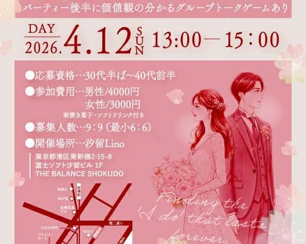 3/22(日) 婚活パーティー 30代半~40代半くらい...