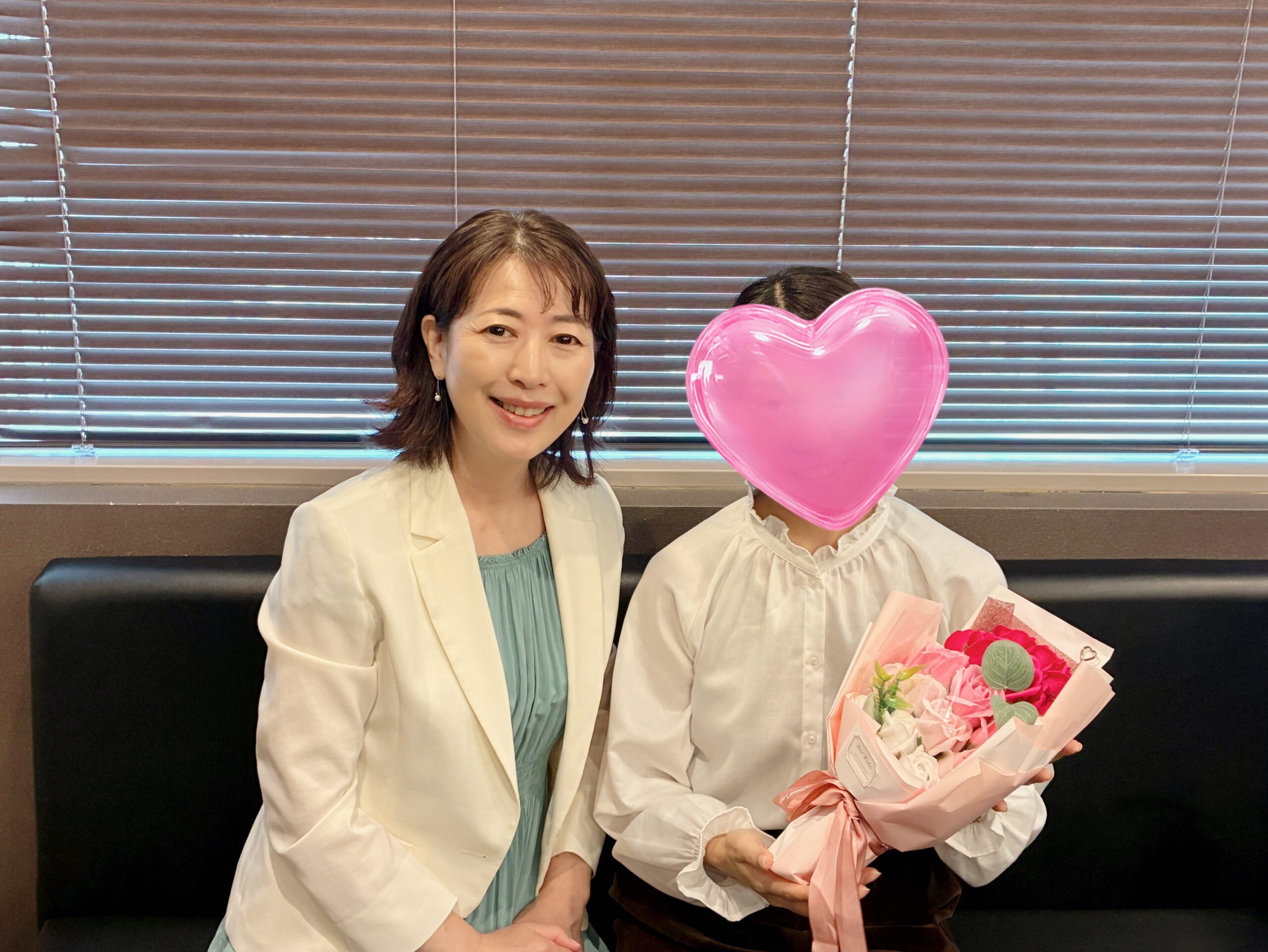 入会面談では不安そうなお顔でしたが、今では笑顔いっぱいで充実している日々なのがわかります。ほっと安心できる場所を見つけたのね!たくさん幸せになってくださいね♪